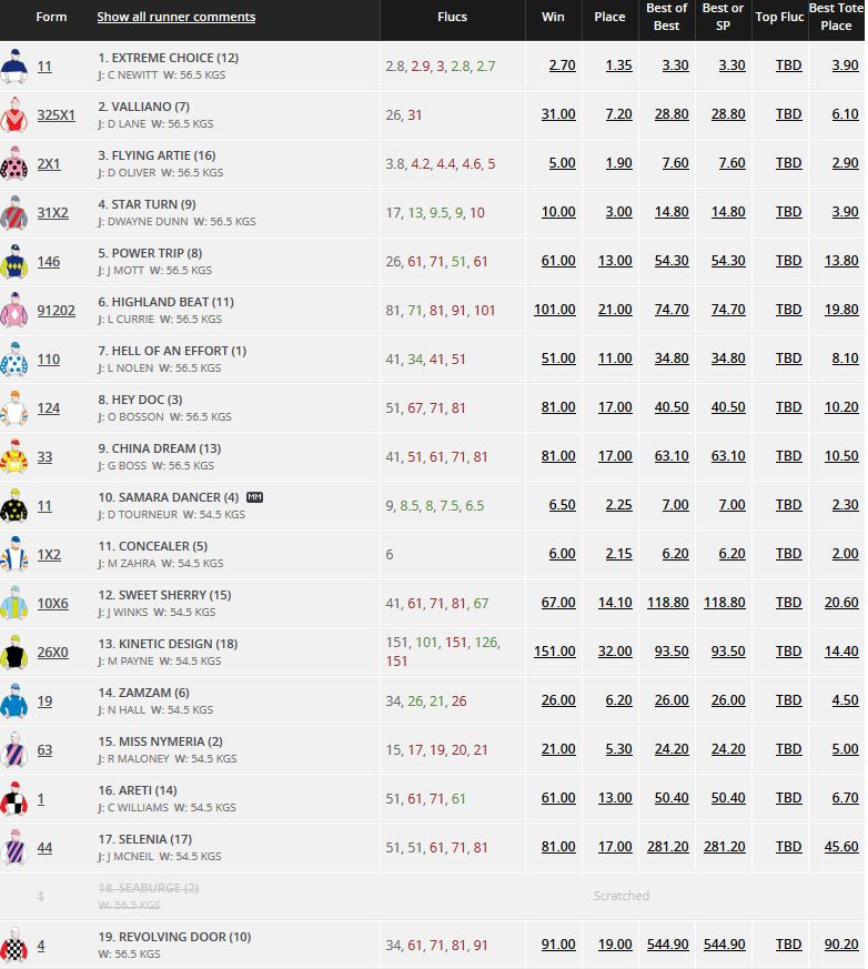 1.「極選」(Extreme Choice)、13檔: 自12月在蘭域輕勝新馬賽後,再於兩個在三級賽主席錦標大勝近五個馬位,在賽事中跟隨頭馬,未轉入最後直路取得領先,轉入直路後大幅帶離對手輕勝而回,因而成為外圍盤口的大熱門。