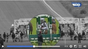 騎師伊維斯在蘇格蘭咸美頓馬場策騎,其策騎的馬匹需要黑布蒙頭上陣,但起步時,不知道是工作人員他慢半拍,還是施閘人員沒注意,結果……