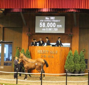 周歲馬部份拍賣不久,已經看到出價2億的馬,就是13號的Silverskaya雄馬,父系「大震撼」(Deep Impact、ディープインパクト),半兄是一級賽上名的「塞維爾」(Seville)。投得者是Kieffers集團,他們的老闆是武豐的瘋狂支持者,其馬匹指定要由武豐策騎。他希望可以讓武豐贏凱旋門大賽。