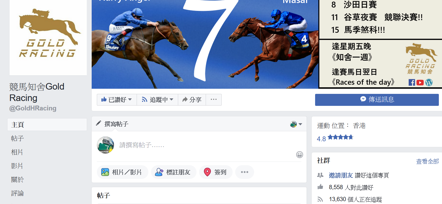 2017年5月成立的競馬知舍,單單14個月,讚好人數超過8000,而且在真正的馬圈內有不錯口碑,還有媒體報導。我們曾經與他們合作,例如凱旋門賽日、經典戰線