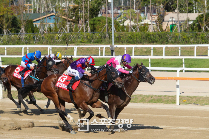 「超勇勁駒」(Perdido Pomeroy、페르디도포머로이)一如以往首先帶出,至於「韓國王牌」(Ace Korea、에이스코리아)以及較慢起步的「玉龍公子」(Wild Dude)亦跟隨上來,另外外側還有「高速小將」(Geuma Rapid、금아래피드)以及「沙登納里」(Zentenary、젠테너리)都跟得相當前,接下來有「早安大羅」(Morning Daero、모닝대로)以及美國馬「扇鰭活魚」,至於「藍天堡馬」想切入,但根本沒有機會,因為被「爵士藍調」頂著,還側還有法國馬「猛拼王」(King Malpic)、「多多益善」,最後一匹是「奇蹟閃電」(Wonder Bolt、원더볼트) 。