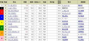 14.「以柔制勝」(Win Tenderness、ウインテンダネス):血統出自「結伴行」(Company、カンパニー),相當冷門的馬匹。今年於5月初贏出1600萬條件賽後,立即升上公開班次,贏出目黑紀賽,後來於京都大賞典以及阿根廷盃跑獲接近名次。