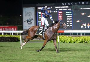 新加坡上週舉行最後一次週二夜賽,A級賽突成焦點。「林家遊輪」(Lim’s Cruiser)配見習騎師阿密魯減磅,結果轉彎進入內側不久帶出,輕鬆以兩個馬位取勝,作為征戰香港國際賽事的強心針,屆時將會配潘頓上陣。