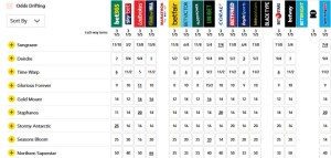 隨即星期四的檔位抽籤後,主力爭標馬均在外檔,不過對「美麗傳承」影響不到,均在2倍以內,檔位公開後,「魔族雅谷」排在內檔,成為了次熱門。「波斯劍客」退居其次,接著「我作主」與「美麗大師」人氣差不多。「律師公會」以及「川河尊駒」亦在20倍以內,反而「星州司令」頗為冷落。