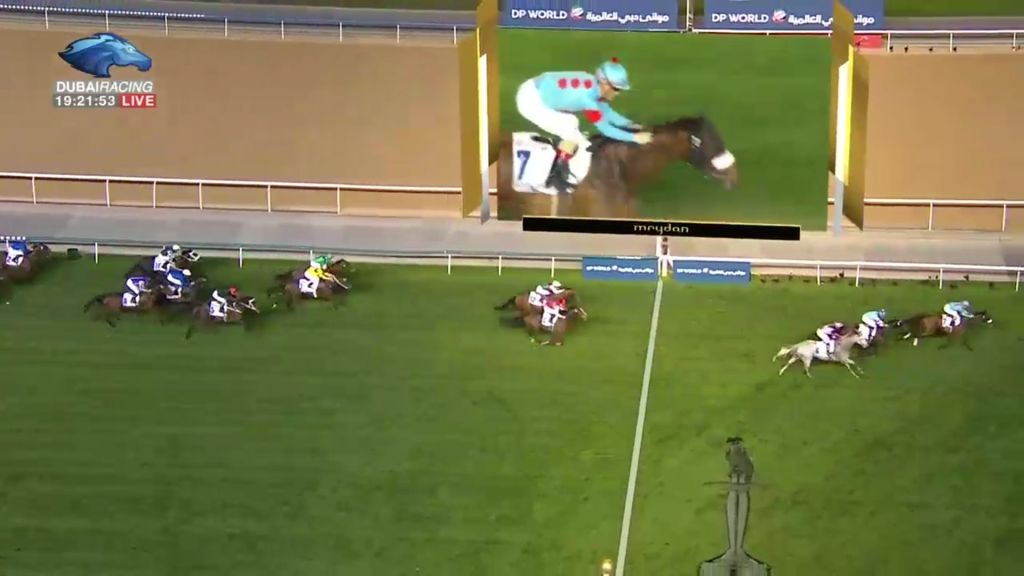 「杏目」(Almond Eye、アーモンドアイ)首次遠征杜拜,在草地大賽居中,一直處於外疊,直路當前領馬乏力,輕鬆帶出。雖然有「強擊」(Vivlos、ヴィブロス)以及「閃光爵爺」(Lord Glitters)追擊,但最後仍能取勝。「杏目」目前有多個目標,如歐洲賽,或者會不會來香港呢?