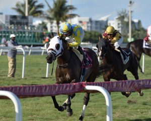 草地賽淘氣貓錦標,Island Commish最近找回了競賽觸覺,在這場1500米草地賽中,直路咬著頭馬,並等待機會將頭馬追過。以半個馬位取勝,似乎可以在一哩賽中發揮。