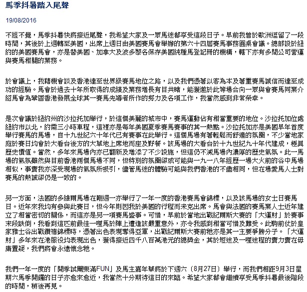 可是一直都沒看到香港賽馬會發表任何聲明。不論本誌還是各大媒體都是叫聲不聞。