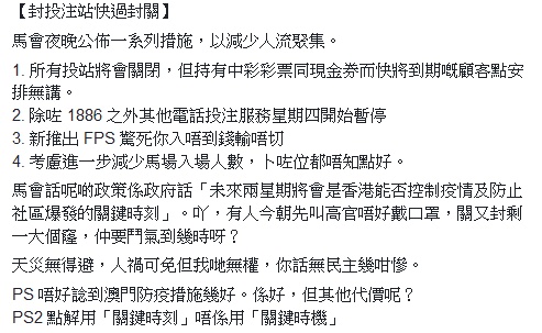 因為連卓定咸賽馬節負責人將不會提供任何措施。時間還是三月中