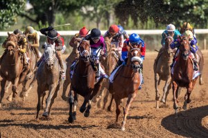 接下來去到美國,堅蘭有四場重要賽事,包括三場一級賽以及藍草錦標。首先是麥迪遜錦標。Guarana今年轉戰短途泥地賽,這匹雌馬直路初段被Mis Mischief追過,但在最後200米反壓對手。以半個馬位保住1.5倍的大熱門勝利。替練馬師白偉賢贏出100場一級賽。