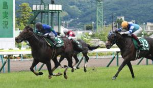 最後是福島馬場七夕賞,由於是著名大熱門墳墓,因為超過一半馬匹在20倍以下。不過還是由福島主場王佔天下,即使場地有多爛也好,「越來越愛」(Cresecndo Love、クレッシェンドラヴ)從中段慢慢發力,直路時已經望空,結果這匹在福島未錯失Q的馬匹,負最重磅之下仍能取勝,在福島5戰2冠3亞佳績。以一個馬位擊敗「極峰」(Verxina、ヴィルシーナ)兒子Bravas(ブラヴァス)。