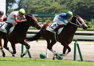轉到日本,週六各有一場新馬賽以及提及一場三勝班賽事。首先是札幌的草地1500米賽事。「比薩勝駒」(Victorie Pisa、ヴィクトワールピサ)子嗣Opal Moon(オパールムーン)轉入直路後轉出三疊,最後200米加速。以馬頸位壓過Virtuality(ヴァーチャリティ),至於良血馬Kukuna(ククナ)後追太遲跑第三。