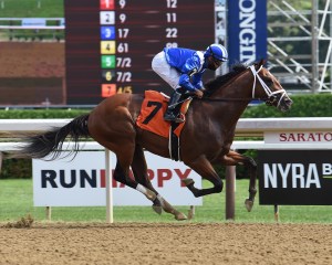 42萬5千美元周歲價的沙德韋爾馬匹Mutasaabeq在沙拉托加一場1100米處女馬賽中輕鬆以五個半馬位大勝而回。此駒來自搶手種馬的Into Mischief能不能在更長賽事發揮?