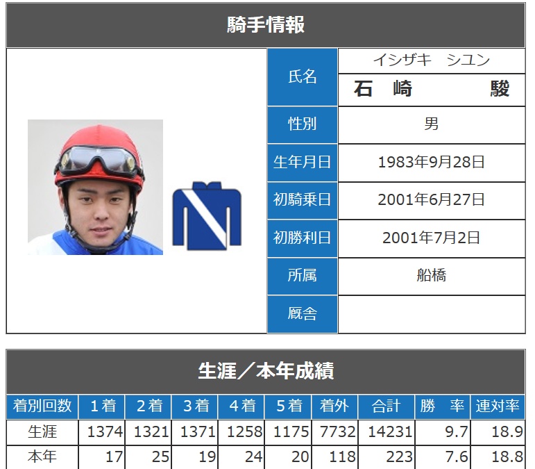 來自船橋石崎駿,宣佈當日凌晨證實感染。根據地方全國競馬協會的資料,石崎來自船橋,與亦上週前往大井策騎吻合。他的經理人亦證實了此事。