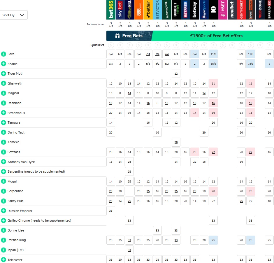 僅在法國橡樹大賽激鬥之下敗北的「懷壁行」(Raabihah)在紅寶錦標成為大熱門,早前在普賽克錦標亦大勝,就看看今次在英國馬環境下能不能贏出。「大利威」(Tarnawa)雖然在愛爾蘭贏出一場三級賽,不過似乎來勢不錯。在法國的支持度,甚至比起愛爾蘭橡樹大賽冠軍Even So更高。接著就是Valia,在一場三級賽Minerve跑獲亞軍,那麼有力反應同場上陣的Wonderful Tonight嗎?
