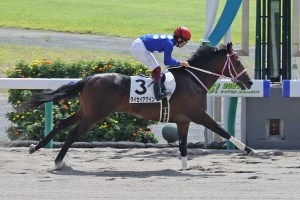 中山第五場草地1800米新馬賽,「實力比試」(Passing Through、パッシングスルー)半妹Through Seven Seas(スルーセブンシーズ)以3.2倍大熱門上陣。起步後留守在後方,轉入直路後以一個相當輕鬆姿態追上。雖然有Innario(インナリオ)壓迫,但實際上李慕華一鞭也沒打過。