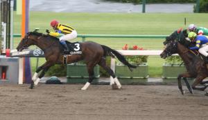 Yoko Lake(ヨードーレイク)早已表明紫菊賞上陣,雖然位處第四位,轉入直路後慢慢追上,最後雖然慢慢才追上Gratitud(グラティトゥー),但仍然很多餘力。