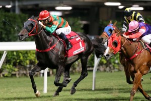 「列卓斯特」(Ribchester)半妹Looktotherainbow,在金頓的雌馬1400米初級賽賽事中帶開對手,並一放到底的輕鬆贏馬。
