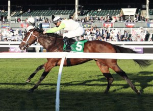 良血馬「莎翁劇場」(Globe Theatre、グローブシアター)雖然已經在早前突破了公開班次,但是之前屢戰屢後,週六首戰障礙賽,在福島上陣,守在第五位之下,最後一個欄過取下領先後,以三個馬位取勝。