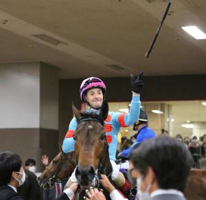 返日星期六,福島競馬場第12場土湯溫泉特別賽。松岡正海策騎Win Kiitos(ウインキートス)在600米發力,並於200米左右取下領先位置,最後以一個半馬位擊敗了Effect On(エフェクトオン)替松岡贏出復出後的第一場勝利。