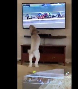 不知這狗狗去到馬場看到1比1真實馬匹,會不會反而被嚇到。