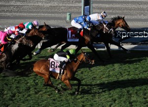 一級賽法蘭基諾錦標。Hit the Road雖然在育馬者盃兩歲馬大賽大敗,但及後在法蘭基諾一哩錦標,在頂級對手不多之下,終點前險勝Smooth Like Strait,為英國出生練馬師Dan Blacker取下首個一級賽勝利。
