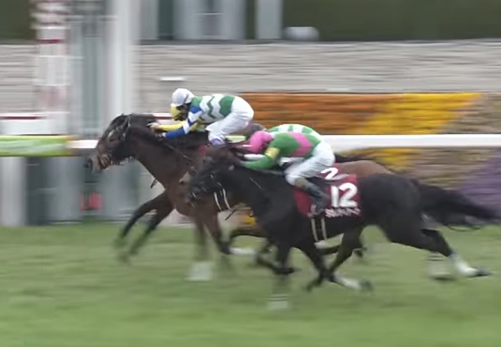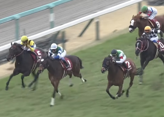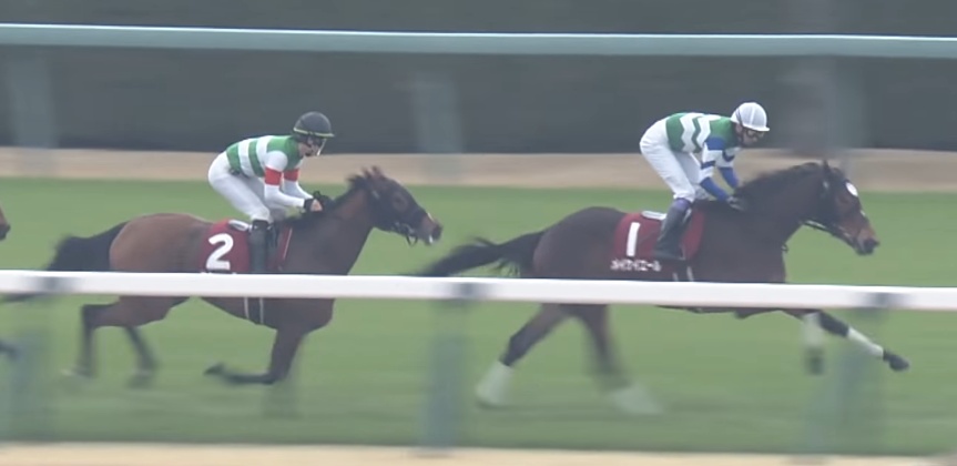 轉入直路後雖然Meikei Yell取下領先,但已經被後上的Elizabeth Tower(エリザベスタワー)追到,看似要輸的時候