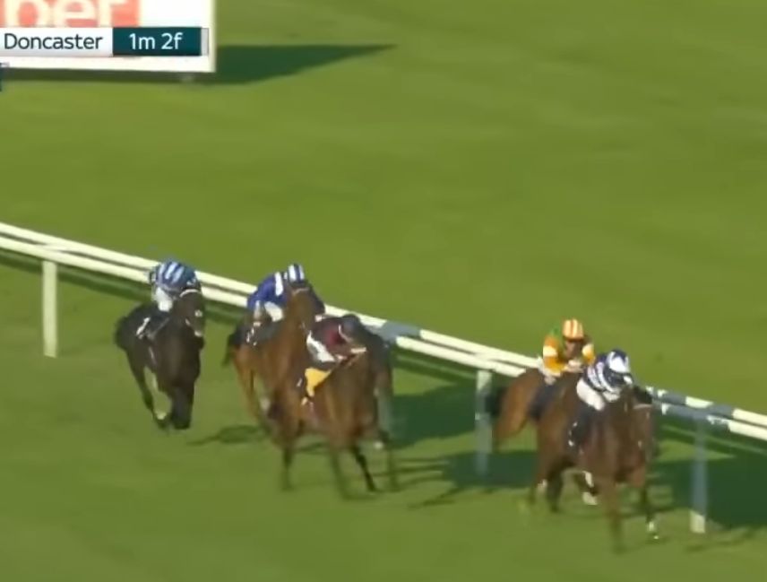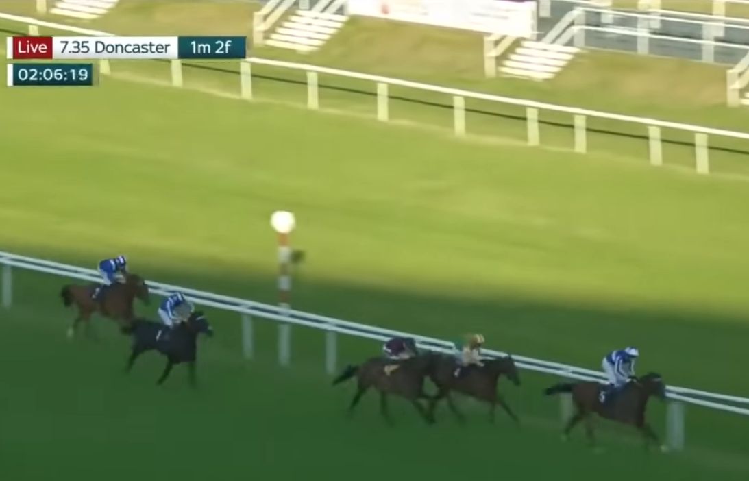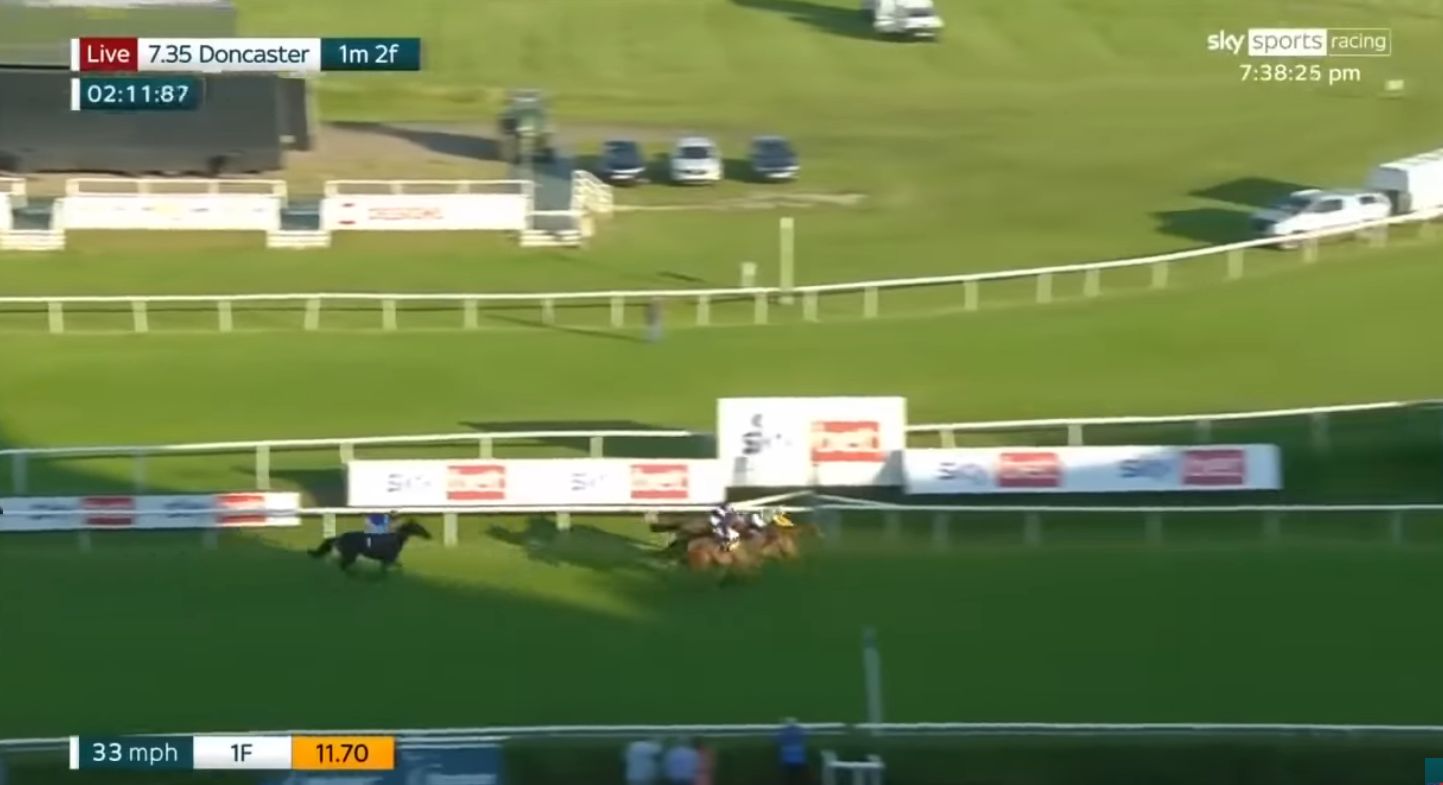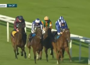 星期六在唐加士達策騎「艾恩力量」(Aerion Power)角逐第二班讓賽,在直路時與其他四馬互相爭持……