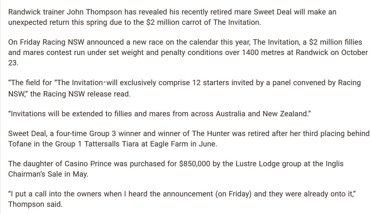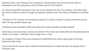 結果已經有馬匹宣佈從退役位置中重新現役。維省賽馬會說沒怕,但以新南威爾斯賽馬會,似乎想除了墨爾本盃,想把維省賽馬會的最後一道門牙都不放過!