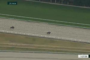 可以看到一匹馬在泥地跑道1000米處起跑,操練的馬匹不只一匹。畫面是真的,最少讓全球觀眾有機會看到札幌競馬場