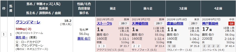 名次差:日本賽馬名次不是以馬位計算,而是秒數,如果是「0.5」通常以兩個半馬位贏出或落後。如果是0.0,則勝負距離由鼻位去到頸位亦有,因為日本仍未使用百分秒計算時間