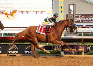接著德爾馬亦有太平洋經典賽,Tripoli一看血統就知道是草地馬,但是前兩戰轉出條件讓賽後轉戰泥地。馬匹亦在聖地牙哥錦標跑第二,接著在太平洋經典賽,把握兩大熱門Royal Ship以及Express Train變「失智列車」齊齊失速下,結果由Tripoli後追追過Tizamagician,贏出首個一級賽冠軍。查回資格,相信是第一匹「淘氣貓」(Kitten’s Joy)子嗣贏出泥地一級賽,當然「佳明驥」(Kameko)亦在膠沙地贏過一級賽。