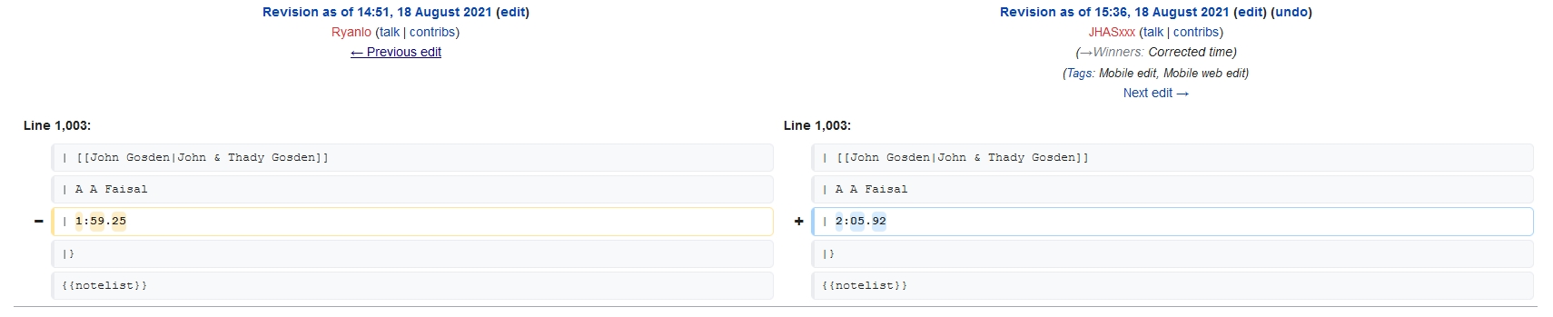 直到第二場賽事跑畢後,才出現更正後的時間。