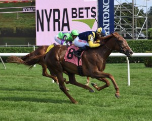 星期日沙拉托加第六場草地1700米處女馬賽。Sadler’s Joy已經確定去土耳其配種,其全妹Hail To在21倍冷門下,從第五位追上贏出賽事。擊敗了由美國賽馬賭神擁有的Kinchen奪冠。