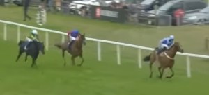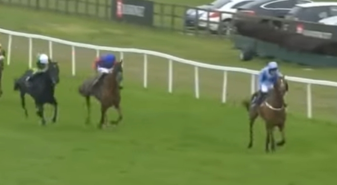 不過馬匹卻不知為何突然內閃,將騎師Brendan Powell拋下。