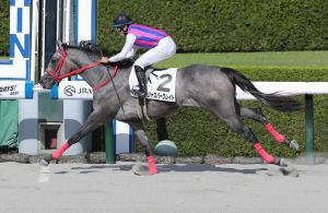 第六場泥地1800米新馬賽,「霸道駒」(Arrogate)子嗣Jasper Great(ジャスパーグレイト)一放到底輕鬆大勝。岩田望來希望馬匹的精神面更有成長。