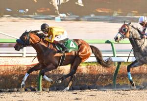 星期六阪神第七場泥地1400米新馬賽,「火焰客」(Pyro)子嗣Pigeon Blood(ピジョンブラッド)起步大落後,看似要拉停之際,但是最後追勢相當強,轉入直路後已經追上後方,結果最後以一個馬位反勝。川島信二稱,馬匹中途走勢順暢,速度仍能在馬群中保持,期待下次的表現。