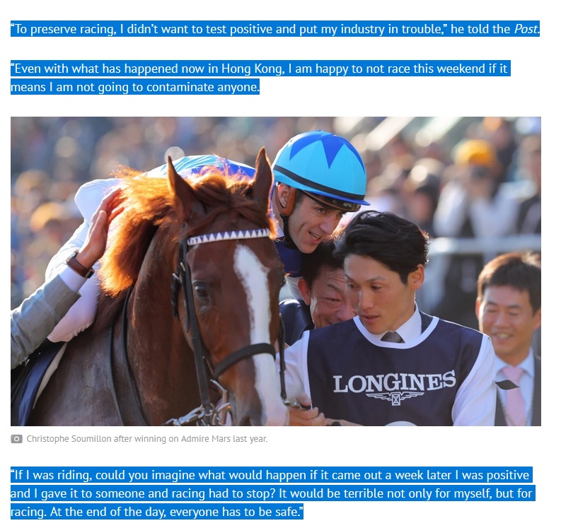 狂小編明白有些人因種種理由,到現在拒絕接種疫苗。不過當大部份國民已經接種下,你反而不接種,早晚就會「執輸」。2022年1月1日,柏威廉被禁止在雅士谷馬閣策騎,不過之後在州內有更多馬場加入,結果反而自己被迫「失業」