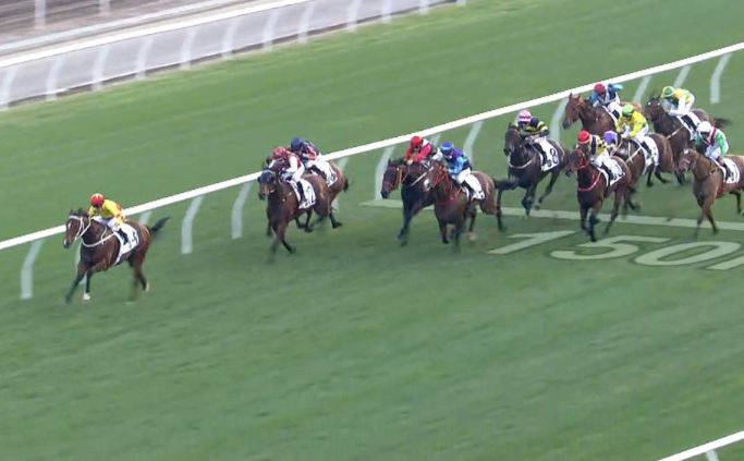 一匹名為New Rocket的灰馬在起步後不久切入內欄位置。