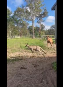 新南威爾斯州鄉鎮之王李善其中一匹訓練的馬匹,亦正在玩袋鼠追逐戰