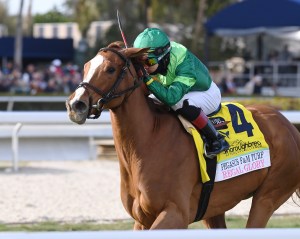 飛馬世界盃還有第三場賽事,就是今年新設的雌馬草地賽。此賽事借殼於一直舉行的Marshua’s River錦標,因此亦獲三級賽資格。結果由贏出一級賽女族長錦標的Regal Glory勝出。練馬師白偉賢已經打算將馬匹與冠軍種馬Into Mischief配種,料之後無法在賽事再見到牠。