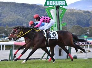 週日小倉第十一場公開賽關門橋錦標,在中央賽事取下兩勝都在小倉的Double Sharp(ダブルシャープ),最後將一直領先的Sifflement(シフルマン)追上,結果以馬頸位險勝。兩駒帶離第三位多達五個馬位。