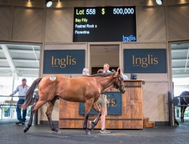 殷利殊精英拍賣會進行最後一天,高價馬陸續出現。第三日最高價的馬匹是558號「燈塔島」(Fastnet Rock)雌馬,母系Fiorentina,出自Dubai Destination,叔父是杜拜世界盃冠軍「蒙泰羅索」(Monterosso),全姊更是一級賽冠軍「潛移默化」(Silent Sedition)。由馬漢雅與Australian Bloodstock以50萬澳元聯手買入。
