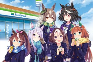 賽馬娘與便利店FamilyMart推出限時發售商品,由2月15日開始,直到3月7日。包括「黃金船」(Gold Ship、ゴールドシップ)照燒炒麵、「無聲鈴鹿」(Silent Suzuka、サイレンススズカ)草莓大福,「東海皇帝」(Tokai Teio、トウカイテイオー)蜂蜜檸檬、「目白麥昆」(Mejiro McQueen、メジロマックイーン)水果甜點。