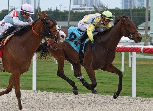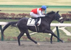 星期日東京第四場泥地1600米新馬賽,「大鳴大放」(Duramente、ドゥラメンテ)子嗣Shonan d’Art(ショウナンダール)在直路上帶離對手,最終六個馬位大勝而回。丸山元氣稱,雖然贏泥地賽,但升格班草地賽一樣也沒有問題。