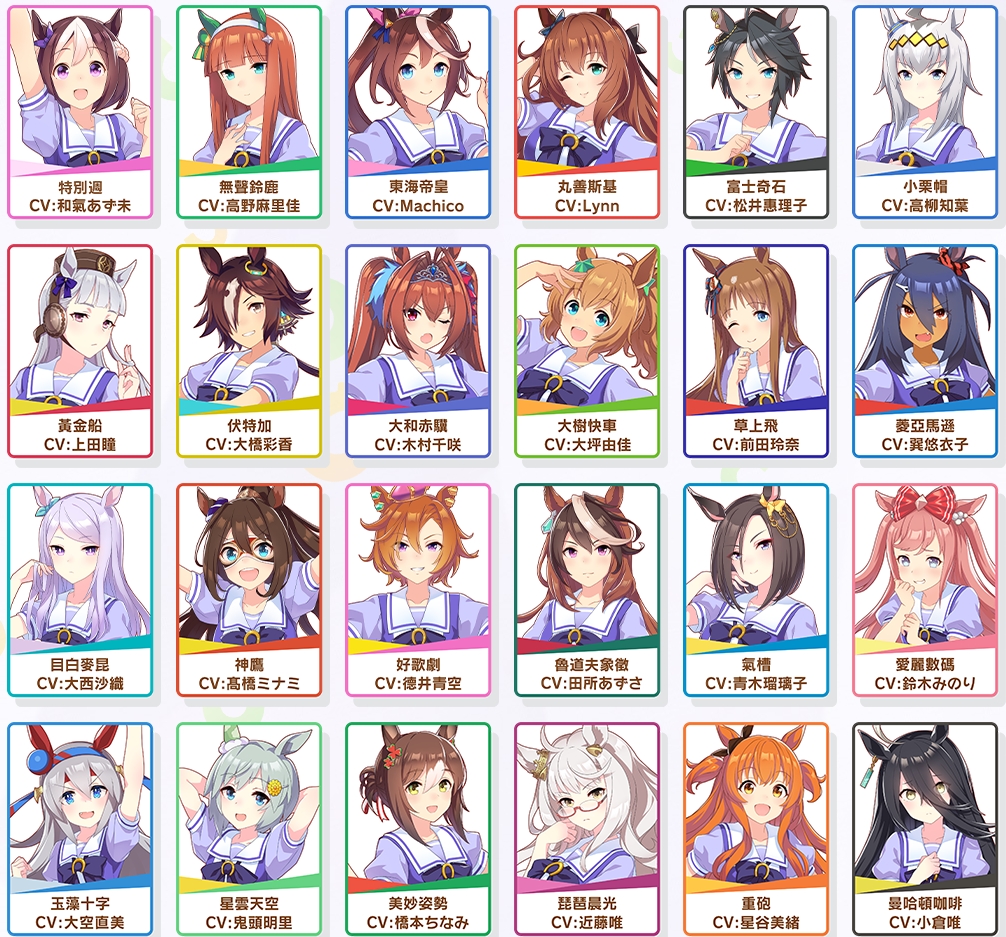 目前賽馬娘的角色,公佈了最初60位賽馬娘當中的47位。不過人間角色卻有較後才公佈消息的安心澤刺刺美。
