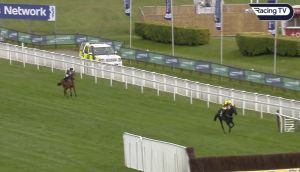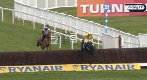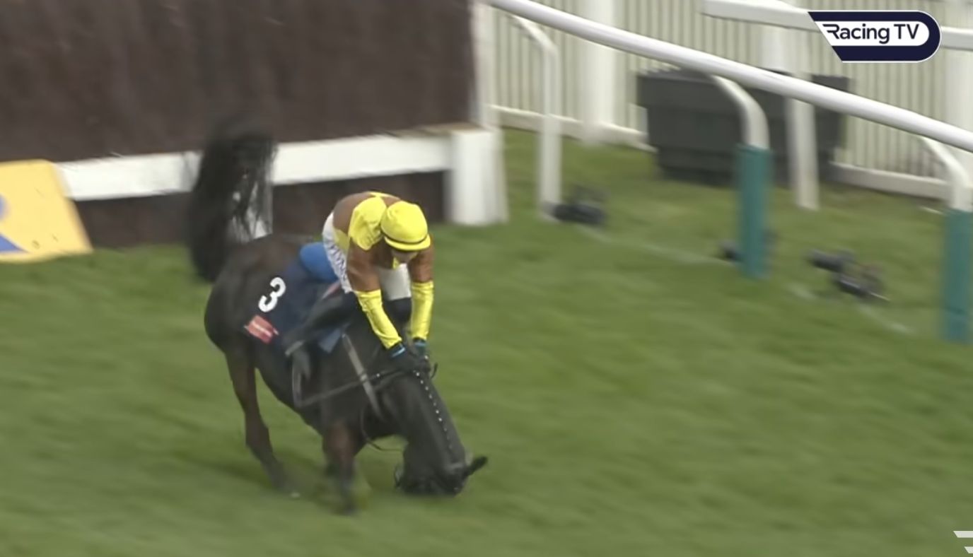 不過去到最後一個欄卻發生失誤,Galopin Des Champs將騎師Paul Townend拋出去