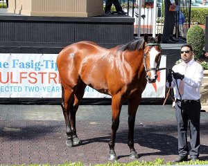 Fasig-Tipton週三在灣流舉行拍賣會。有兩匹身價過百萬美元馬匹,首先是48號Bolt d’Oro雌馬,由Spendthrift Farm購入。至於84號Justify雄馬,母系為一級賽冠軍Appealing Zone,半兄是2017貝蒙錦標冠軍Tapwrit,以110萬美元由古摩亞購入。