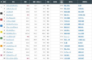 15.「小樽永在」(Otaru Ever、オタルエバー):去年7月首勝,一直保持表現,三個月後再贏出阪神1400米條件賽。朝日盃未來錦標大敗後,獵鷹錦標改用後上跑回第三。由橫生和生接騎