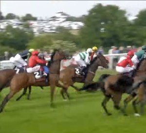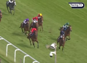 攝影機未知是鏡頭錯誤,還是有工作人員誤觸變焦按了放大,結果連馬匹過終點時也模糊不清。