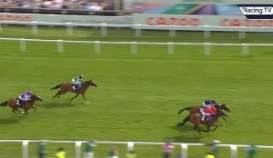 攝影機未知是鏡頭錯誤,還是有工作人員誤觸變焦按了放大,結果連馬匹過終點時也模糊不清。